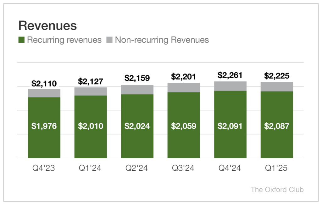 And that growth has continued through the first quarter of 2025. Revenues topped $2.2 billion for the quarter, up almost4% year over year.