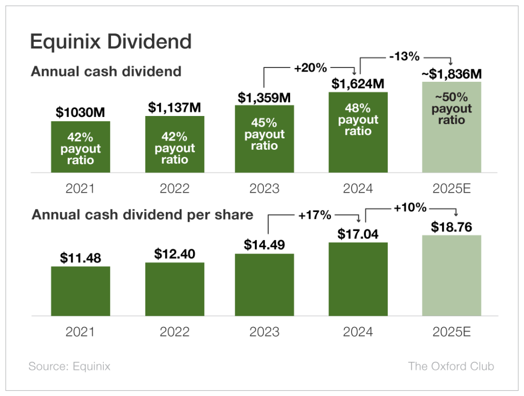 AI will put immense pressure on global internet infrastructure. More traffic through the world’s data centers means more tolls for Equinix to collect, more profits for the company and more “AI Income” for you.