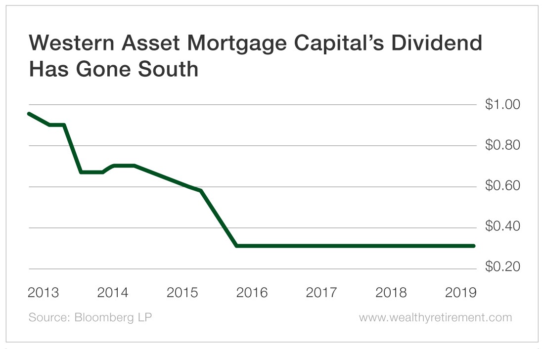 But here’s the problem – Western Asset Mortgage Capital lowered the dividend eight times between 2013 and 2016. And since then, the dividend has been flat.