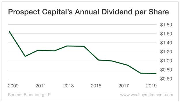 However, there are some instances when determining the prospects of a company’s dividend is not terribly hard. That’s the case with Prospect Capital (Nasdaq: PSEC), which is likely facing a dividend cut in the next 12 months.