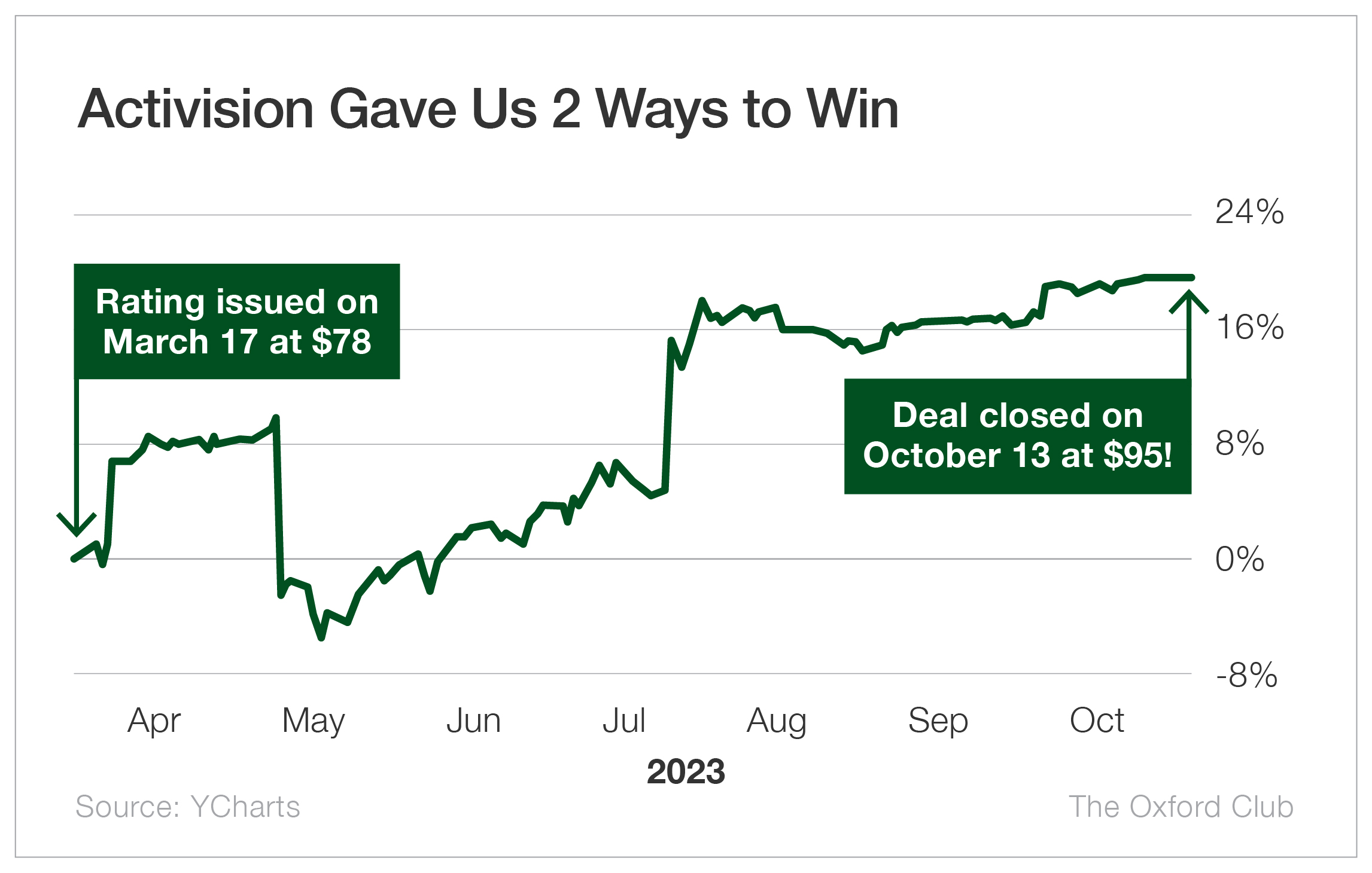 My view was that this was a no-lose opportunity. If the deal were to close at $95, Activision would be a great investment. But even if the deal didn’t close, I thought buying Activision at $78 was still an attractive purchase.