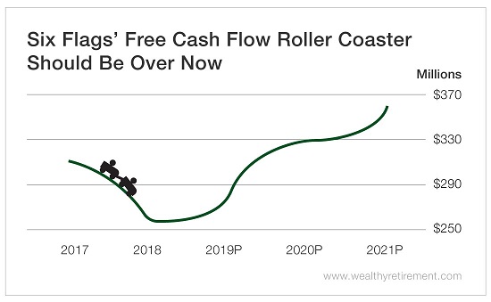 Lastly, in 2017, the company took a loss when it extinguished $37 million in debt. Keep in mind that cash had already gone out the door when the debt was paid off. So in 2017, Six Flags took an accounting charge against its profits and added the $37 million back to cash flow in order to represent its actual cash situation.