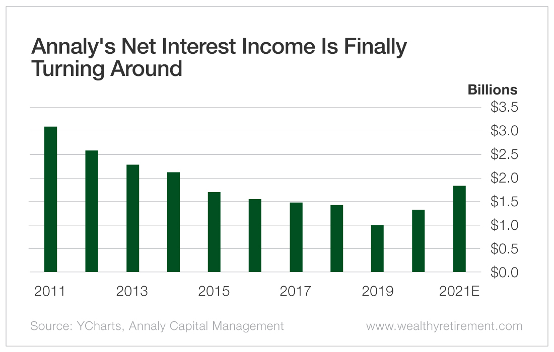 Through the first three quarters of this year, with $1.37 billion in NII, Annaly has already eclipsed last year’s total. I expect the total for 2021 to come in around $1.83 billion. If so, that will be the highest figure since 2014.