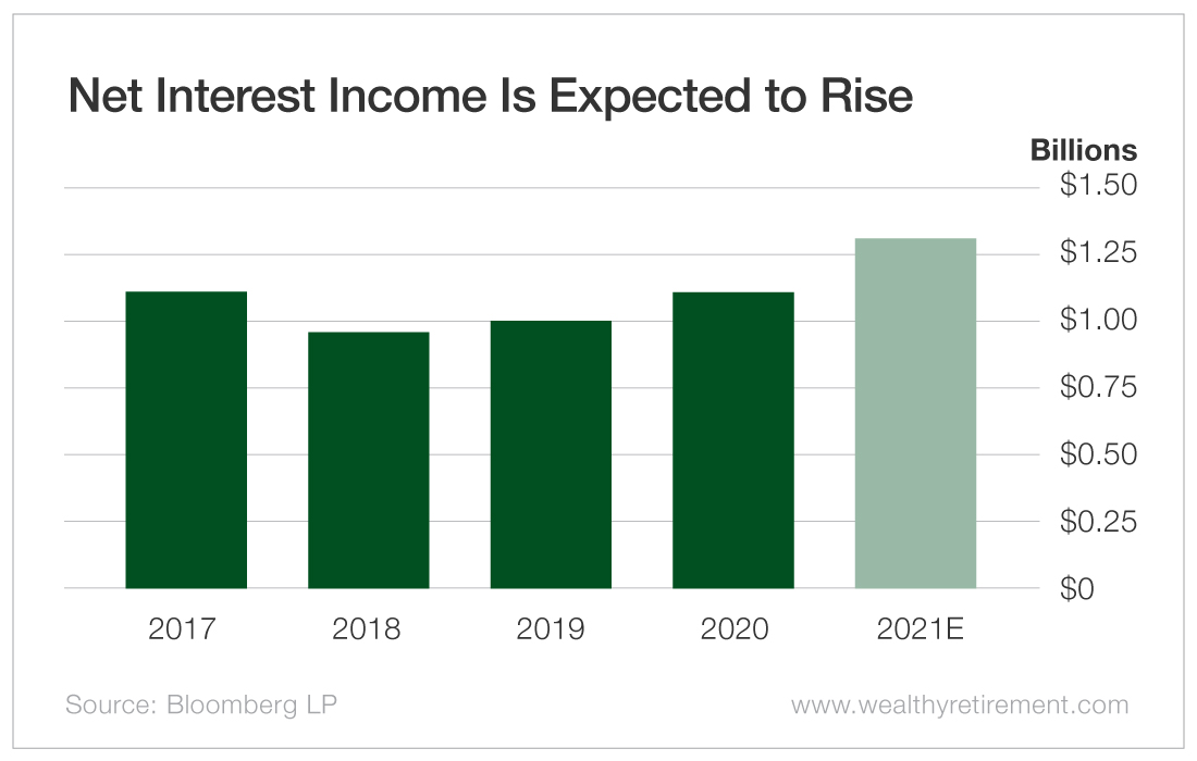 Over the last decade, the company’s NII has flattened. However, Wall Street analysts expect NII to increase 18.2%, from $1.1 billion in 2020 to $1.3 billion in 2021.