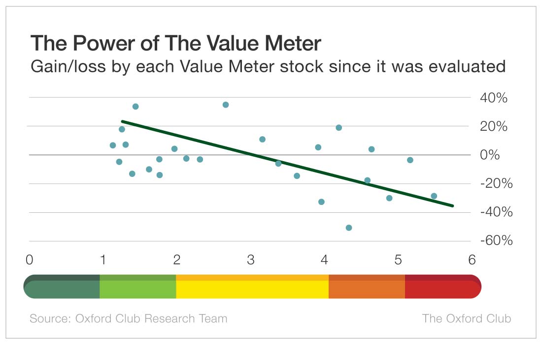 Even more telling is that since we started including Value Meter scores last May, every single stock that’s fallen by 15% or more had a score above 3.6.