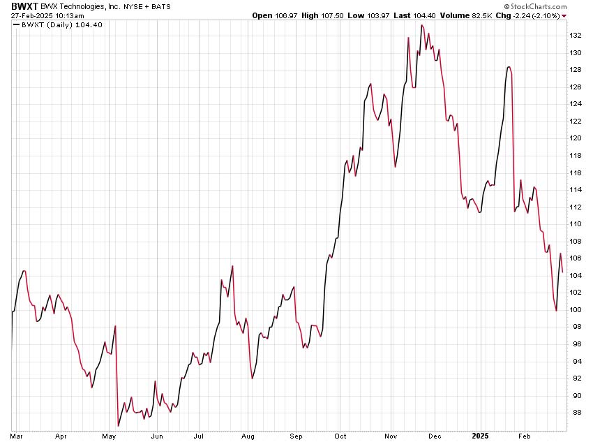 Looking at BWX Technologies‘ (NYSE: BWXT) stock chart is enough to give any investor whiplash. After a meteoric rise from $88 to $132 in just five months last year, the stock has tumbled 21% from its November peak, leaving many shareholders wondering what happened to this nuclear powerhouse.