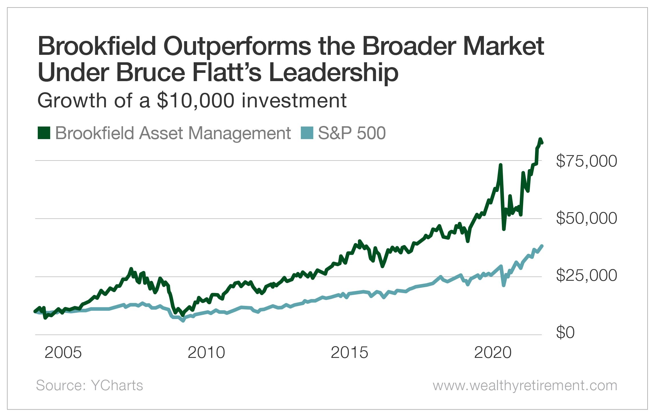 The answer lies in the chart below, which depicts the market-smashing performance of Brookfield under Flatt’s leadership.