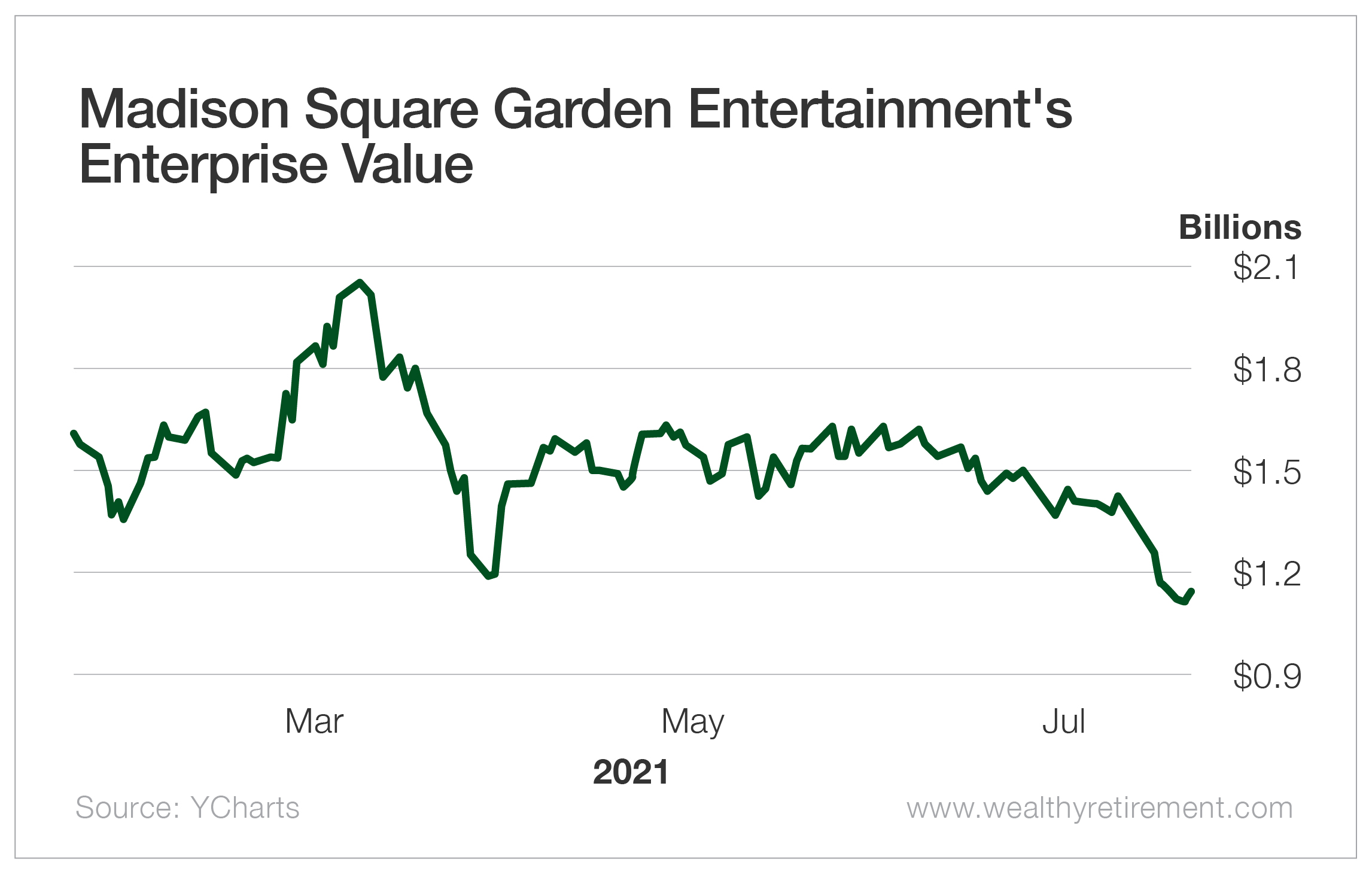 With a recent decline in its share price, the entire company is now valued at just more than $1.1 billion – slightly less than what the Madison Square Garden arena is likely worth.