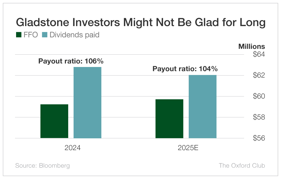 The bigger problem is Gladstone Commercial pays out more in dividends than it takes in.