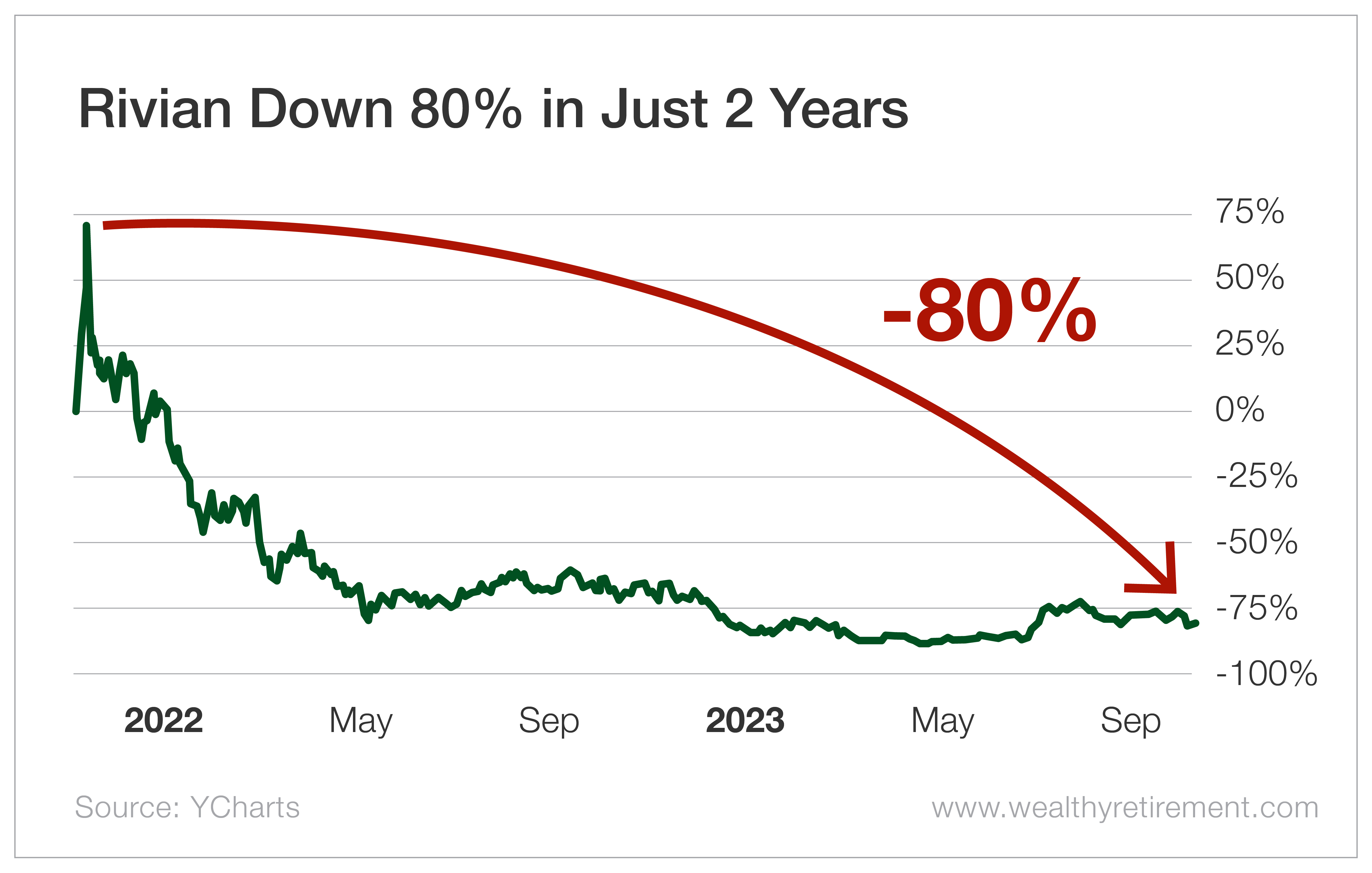 Rivian’s stock soon plummeted and is now down more than 80%.