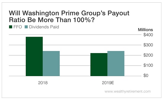 This year, if the analysts are right, Washington Prime Group will pay shareholders $1.05 for every $1 in cash flow. That’s not good.