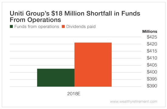 So here’s the problem. If Uniti generates $403 million in FFO but will pay $421 million in dividends, where does the money come from to make up the shortfall?