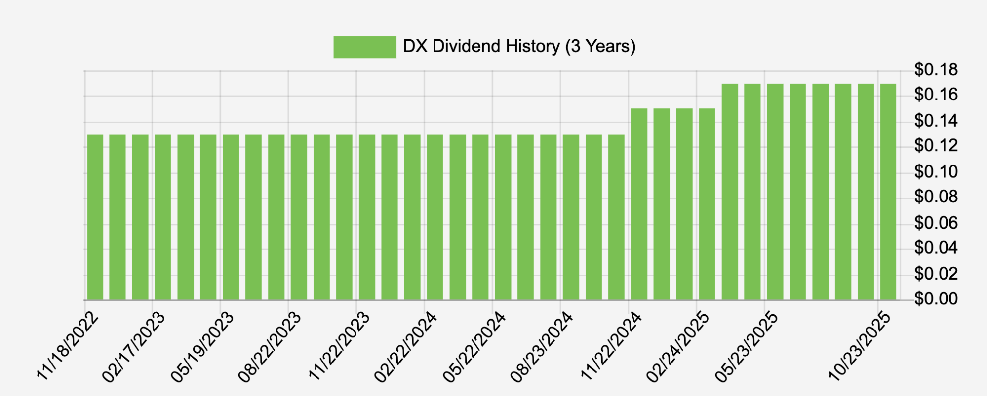 Two years later, Dynex began paying a monthly dividend, reducing it again to $0.15 ($0.45 quarterly) in mid-2019 and once more to $0.13 ($0.39 quarterly) in 2020.