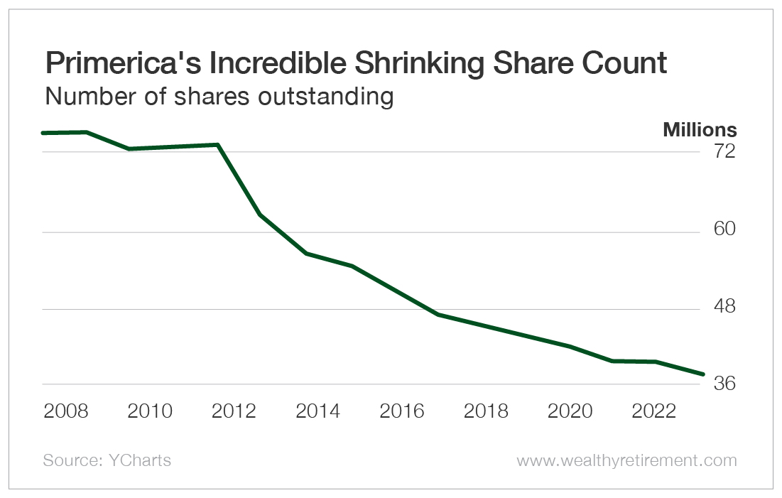 Primerica’s secret weapon has been the company’s relentless focus on repurchasing shares.