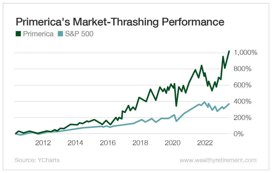 And we can see clear proof of that in Primerica’s earnings per share (EPS), which have increased fourfold over the past decade.