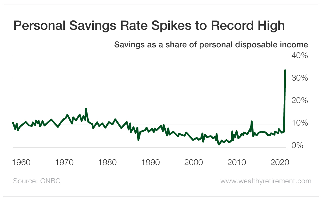 Today’s high savings rate could mean bigger purchases and higher stock prices tomorrow.